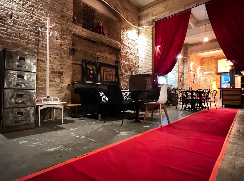 dESCARGAR BROCHURE · MEDIDAS · SALA ·· ESPACIO ÍNTIMO · EVENTOS ESPECIALES · DESDE CASTING HASTA FIESTAS PRIVADAS · 01·SUPERFICIE · LOCAL·127 metros 02·ALTURA · TECHOS ·4,70 METROS 03· ACCESO · PRINCIPAL·Puerta: 1,20mtrs. (ancho) por 2,20mtrs. (alto) 04· TOMA · ELECTRICIDAD ·16 05· TENSIÓN ·230V 50Hz 06· POTENCIA · INSTALADA ·5,750 KW